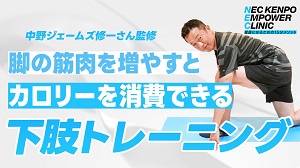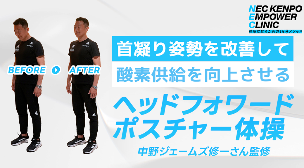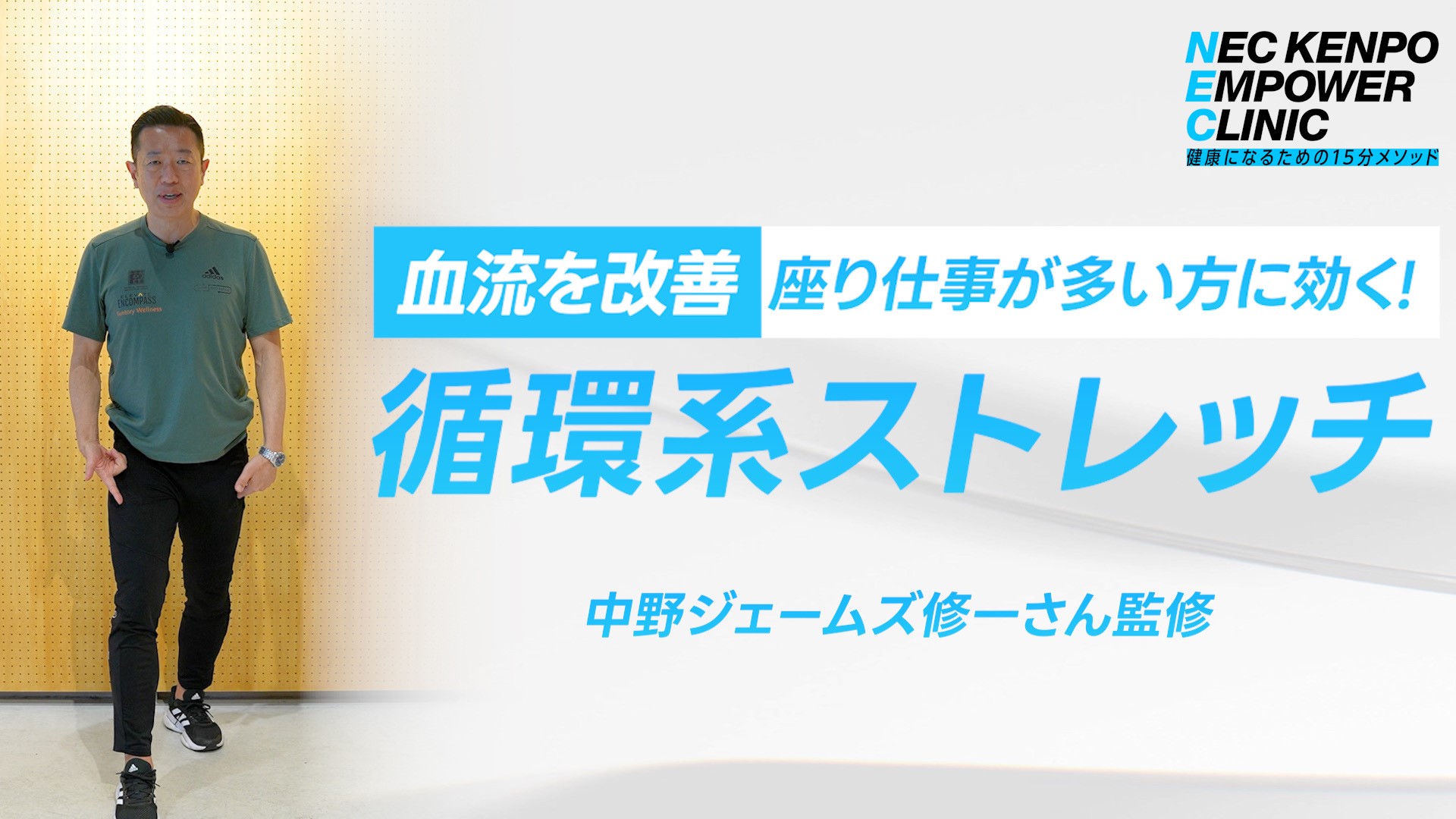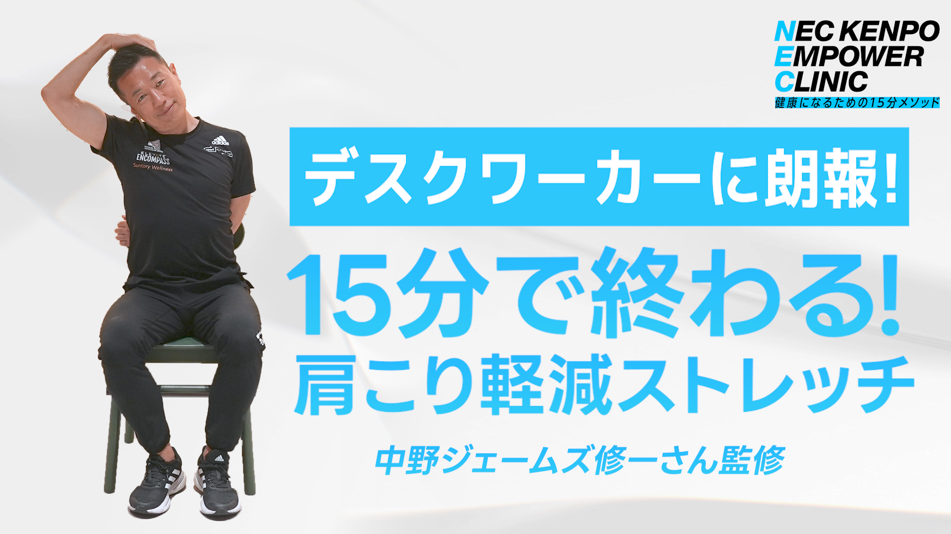 4月 中野ジェームズ修一先生がご考案 NECけんぽオリジナルの体操 日々の運動不足を解消する、ルーティン化しやすいトレーニング 座り仕事が多い方に取り入れていただきたいトレーニングです。 |